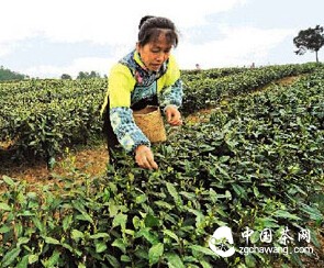 中國茶網資訊:受氣溫升高的影響,今年貴州春茶的開采時間比去年提前了20天左右,來自各茶區的信息顯示,茶青價格較去年有小幅上漲。目前,貴州省茶園面積662.2萬畝,其中投產茶園350.4萬畝,茶園面積連續兩年排名全國第一,已成為中國最大規模、最優秀的茶葉原料基地。上圖為3月12日,開陽縣龍崗鎮萬畝生態茶園基地開采。天還未亮,茶園周圍大石板村、壩上村的布依族婦女便早早起床,趕到茶園集合,采摘早春第一簍新芽。