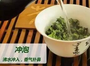 沖泡前,可先用開水溫杯一下,再放入7~8g鐵觀音干茶。進行溫潤洗茶后,為保護細嫩的茶葉表面的絨毛及避免茶葉在杯中激烈的翻滾,應沿著白瓷蓋碗或玻璃杯的杯壁細細的注入水,可保證茶湯的清澈亮麗。